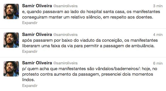 Todos esses tuítes foram publicados entre as 19 e as 22 horas do dia 1º. de abril de 2013 e se referem à marcha daquela noite, em Porto Alegre.