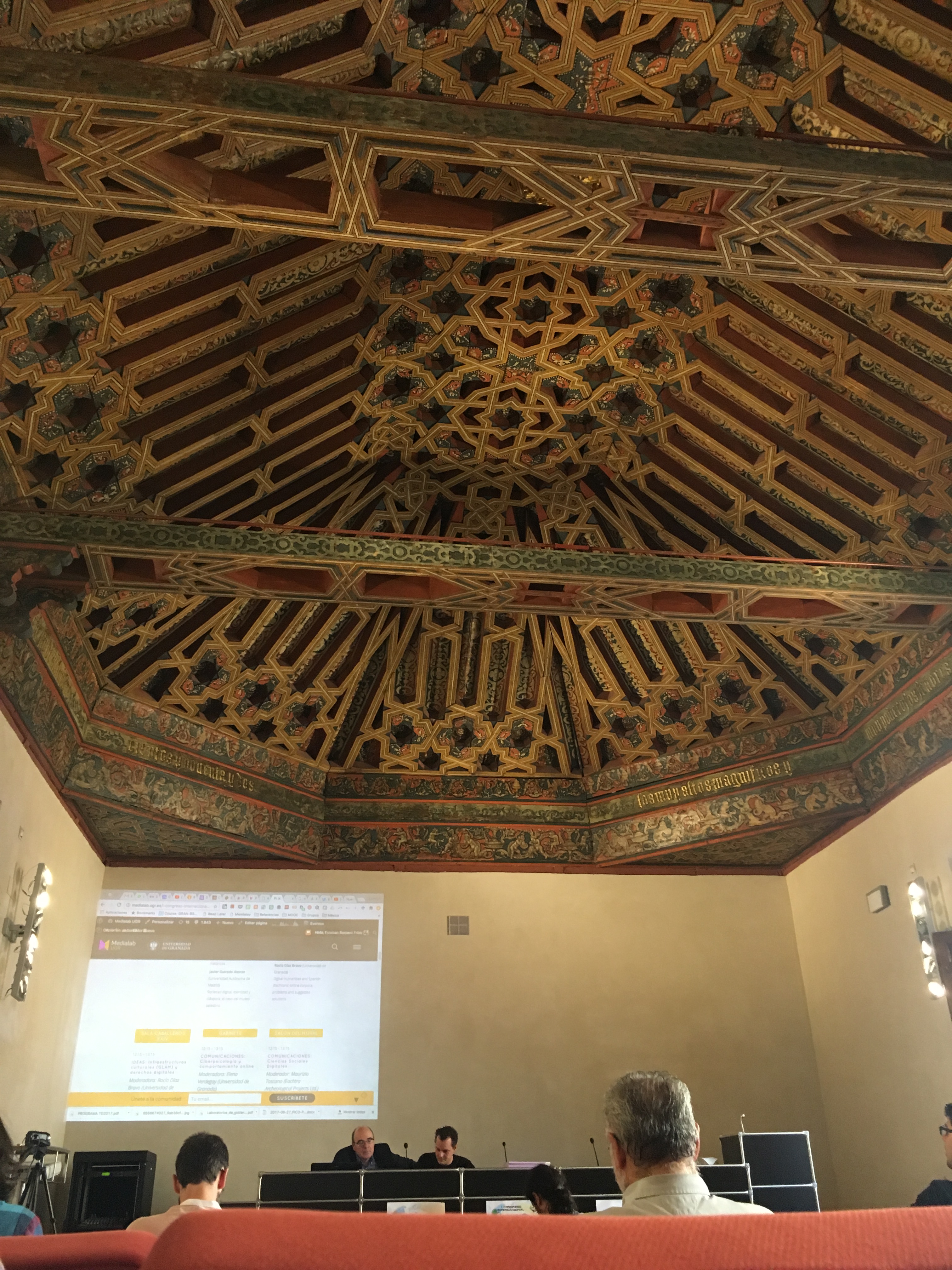 Armadura Mudéjar no Salão dos Caballeros XXIV Julho 8, 2017 Return to: Em Granada para o “Territorios Digitales”Full resolution (3024 × 4032) Image navigation Previous Image Next Image Salão dos Caballeros XXIV, com armadura mudéjar do século XVI
