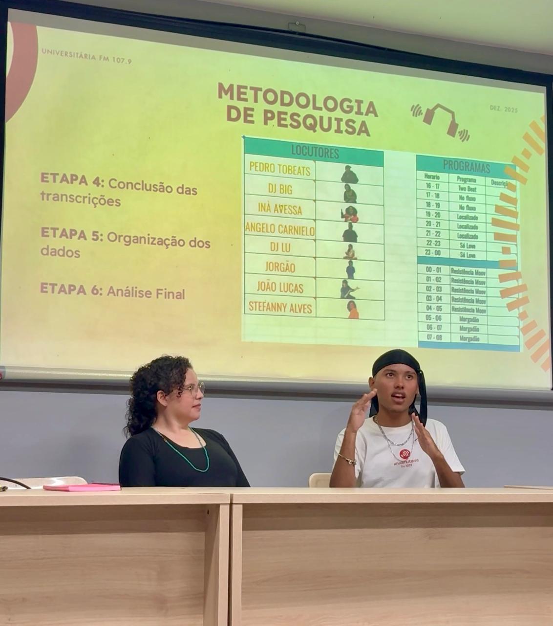 Foi pensando nisso que, em 2025, criamos o Grupo de Pesquisa Som, Música, Mídia e Espacialidade. Em dezembro, foi realizado nosso primeiro colóquio, reunindo trabalhos que buscam desdobrar as práticas e demandas cotidianas na Universitária FM em investigações de cunho teórico-metodológico, envolvendo estudantes de graduação e pós-graduação da Universidade Federal do Ceará.